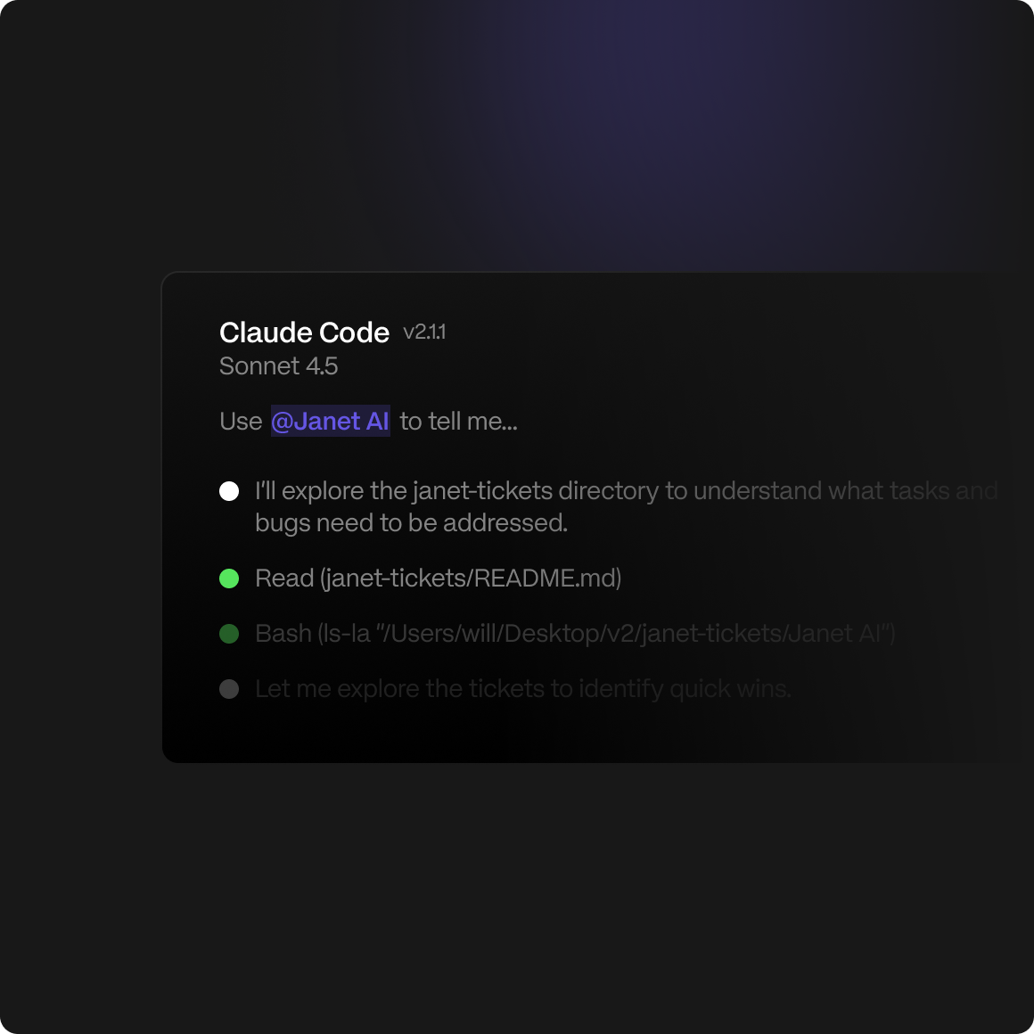 Manage your whole Janet AI workspace from Claude, Cursor, and any other agents.